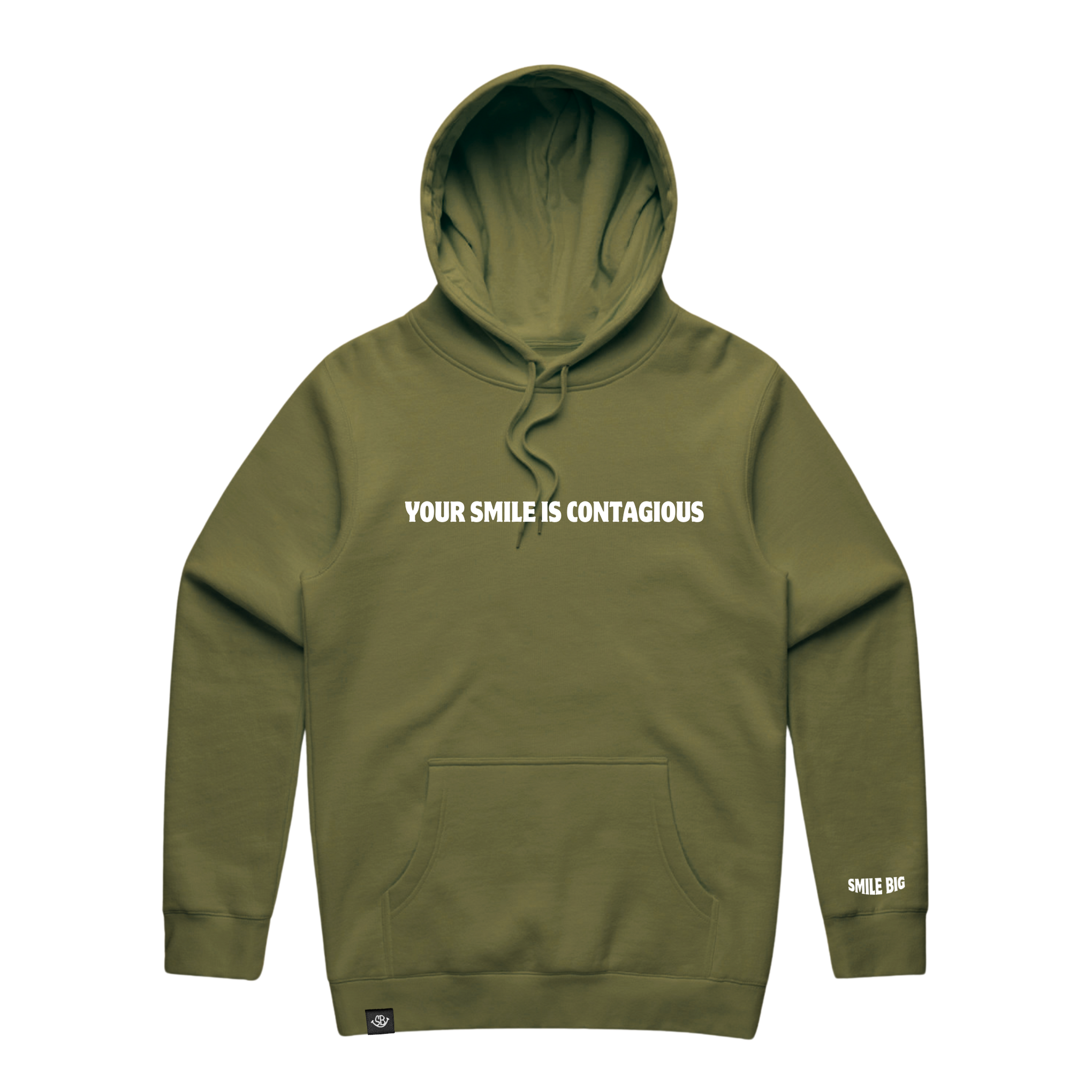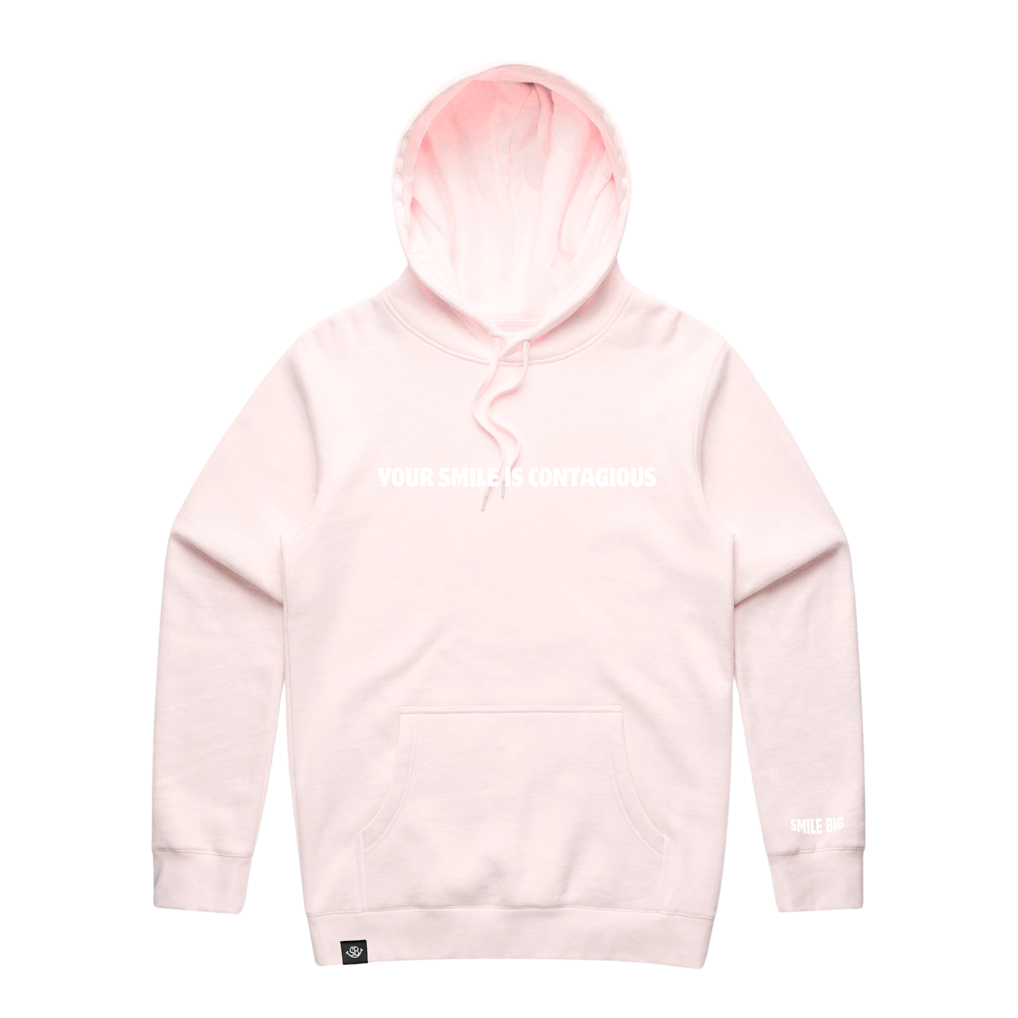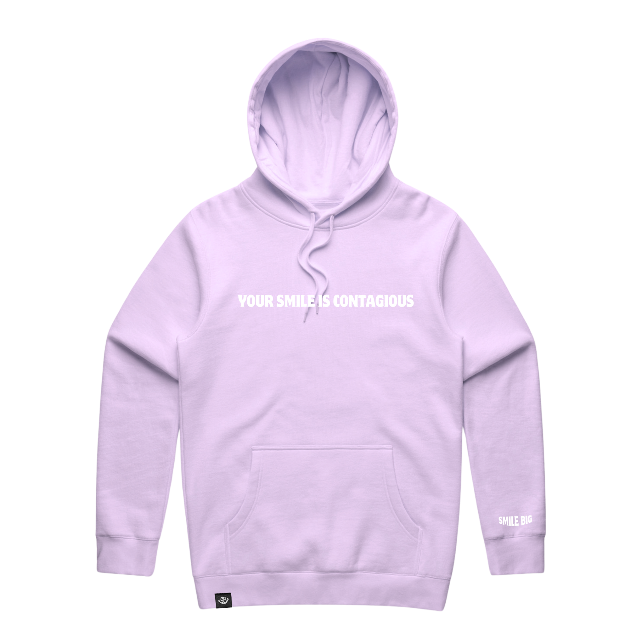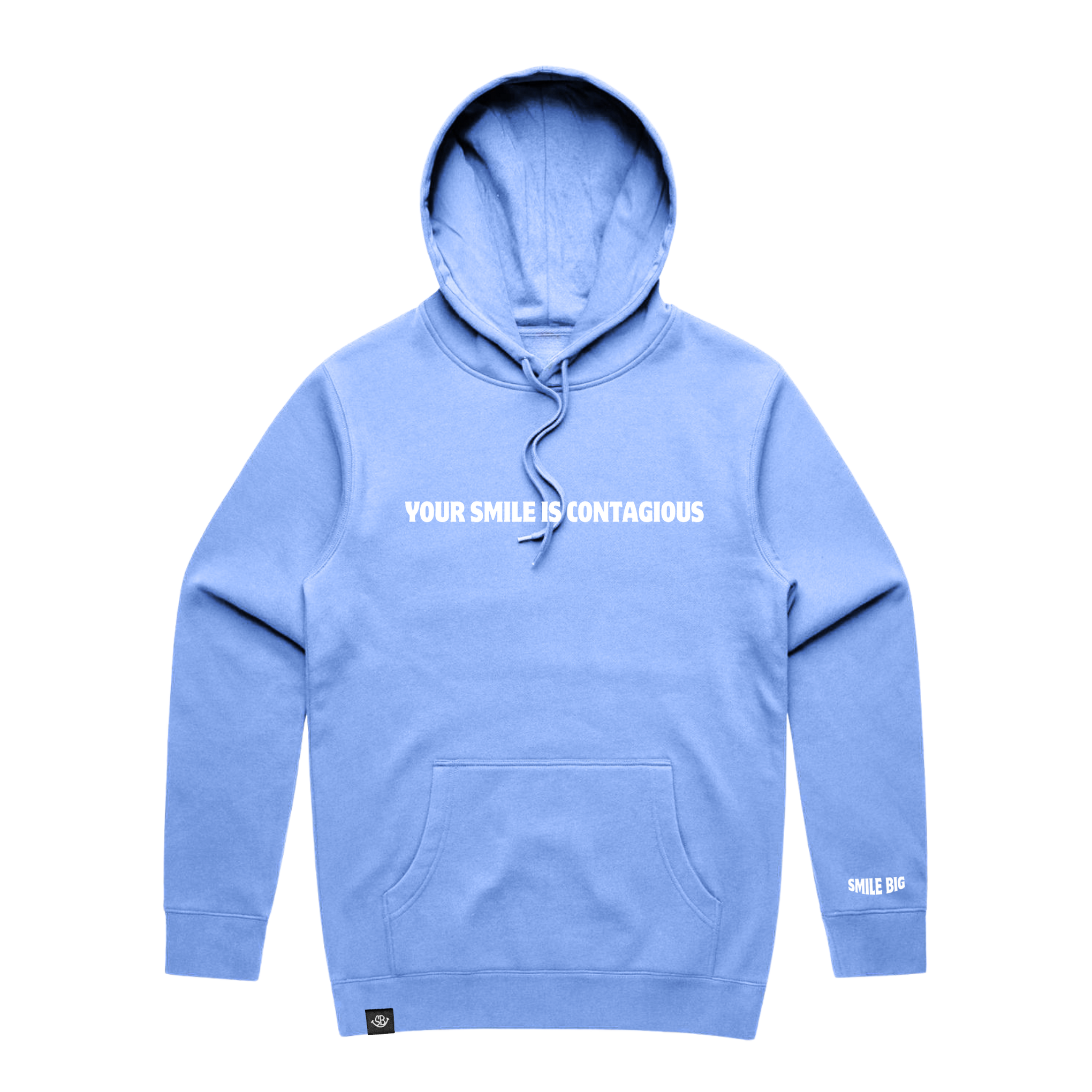 The hoodie that started it all. Bold messaging printed across the chest hints that a simple smile can change the trajectory of someone’s day. Our Smile Big text logo on the left cuff and staple SB woven label stitched onto the ribbed waistband triple down on the reminder to smile.